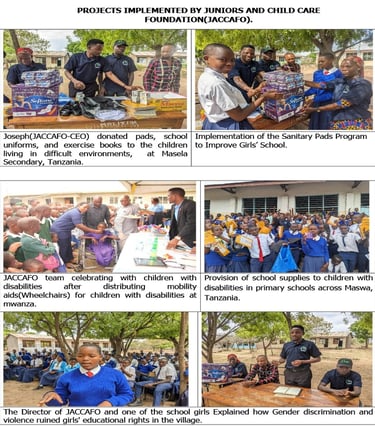 PROJECTS IMPLEMENTED BY JUNIORS AND CHILD CARE FOUNDATION(JACCAFO).